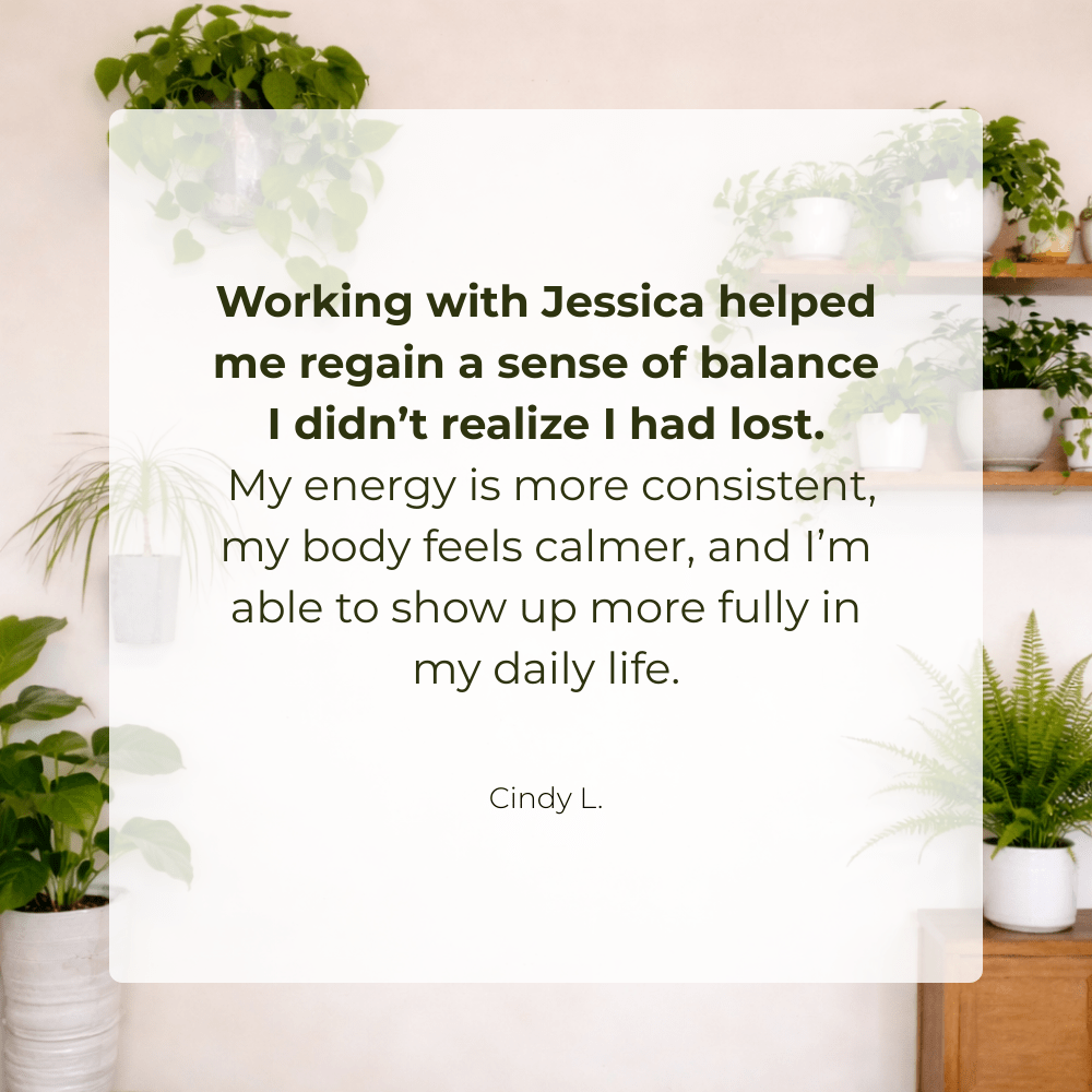 “Jessica’s work and dedication have been amazing, and the results show it. She brought balance back to my body. I would recommend her to anyone who is trying to improve their health.”